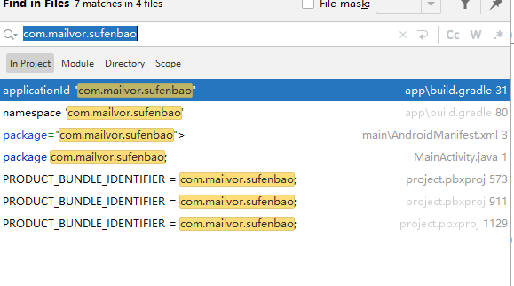 全局搜索com.mailvor.sufenbao,替换成自己的包名。