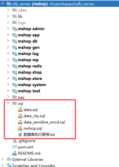 mshop-admin是后端管理服务,提供管理后台的API接口。mshop-app是后端APP服务,提供APP后台的API接口。- 执行