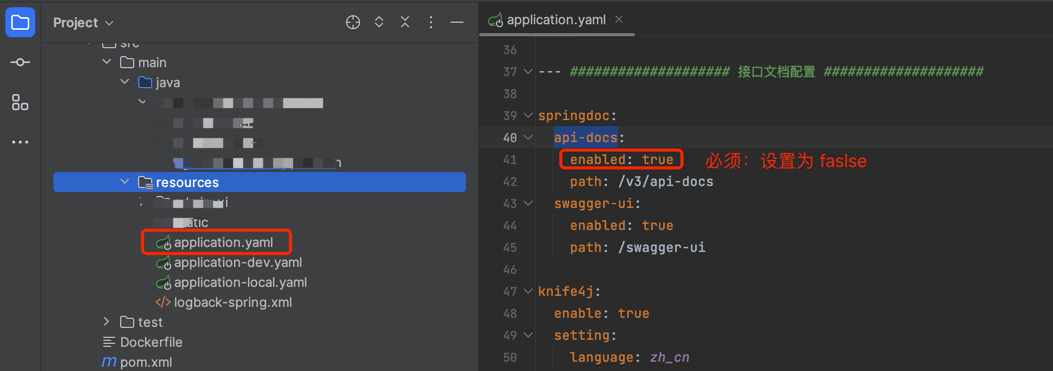 ② 如果想要禁用 Swagger 功能,可通过 springdoc.api-docs.enable 配置项为 false。一般情况下,建议 prod 生产环境进行禁用,避免发生安全问题。