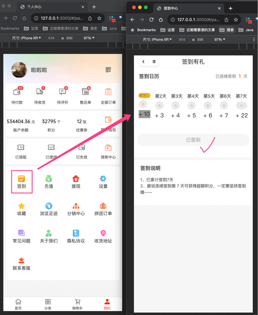 会员等级、积分、签到