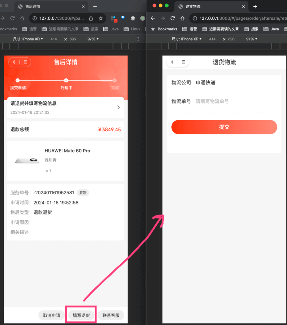 本小节,我们按照售后的 申请 => 审批 => 退货 => 收货 => 退款 流程,来看看售后的各个阶段。