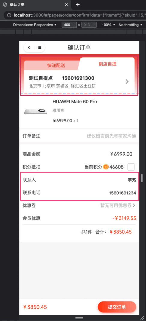 ① 买家在 uni-app 订单结算页时,选择自提,然后选择自提门店。如下图所示: