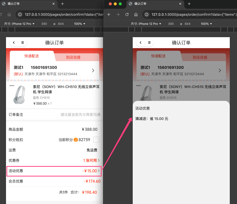 下单时,满减送的价格计算,后端由 TradeRewardActivityPriceCalculator 类实现。效果如下图所示:
