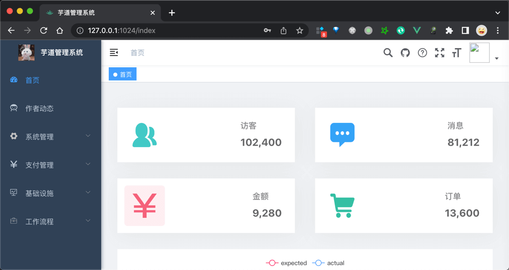 【不同】② 三方登录成功后,跳转回 http://127.0.0.1:1024/social-login 地址。此时,会调用 /admin-api/system/auth/social-login 接口,尝试「快捷登录」。由于该三方用户【已】关联管理后台的 AdminUser 用户,所以直接进入系统的首页。