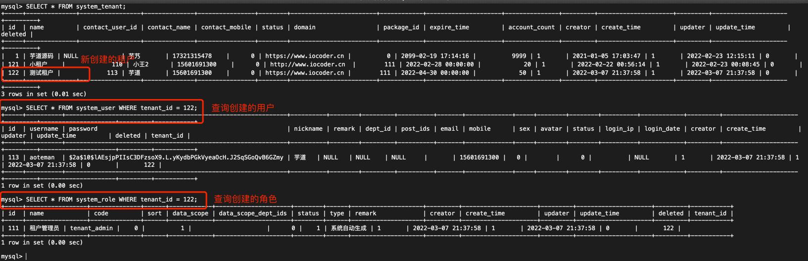 ② 点击 [确认] 按钮,完成租户的创建,它会自动创建对应的租户管理员、角色等信息。