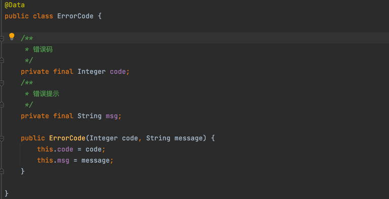 错误码,对应 ErrorCode 类,枚举项目中的错误,全局唯一,方便定位是谁的错、错在哪。