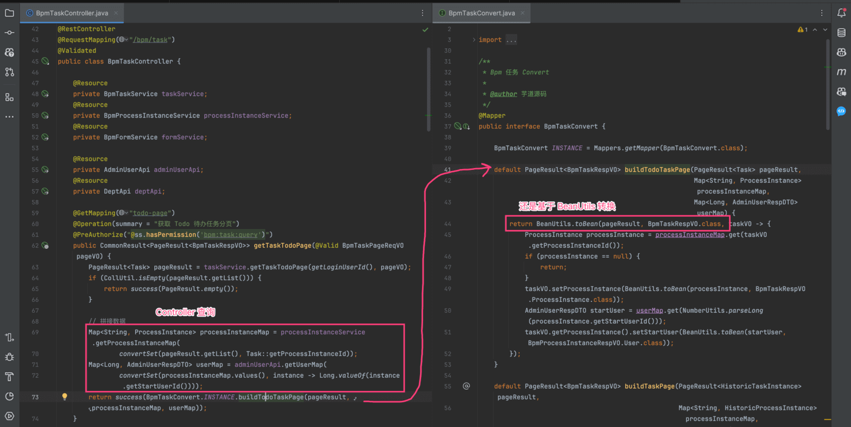 1、在简单场景,直接使用 BeanUtils 的 #toBean(...) 方法,如下图所示: