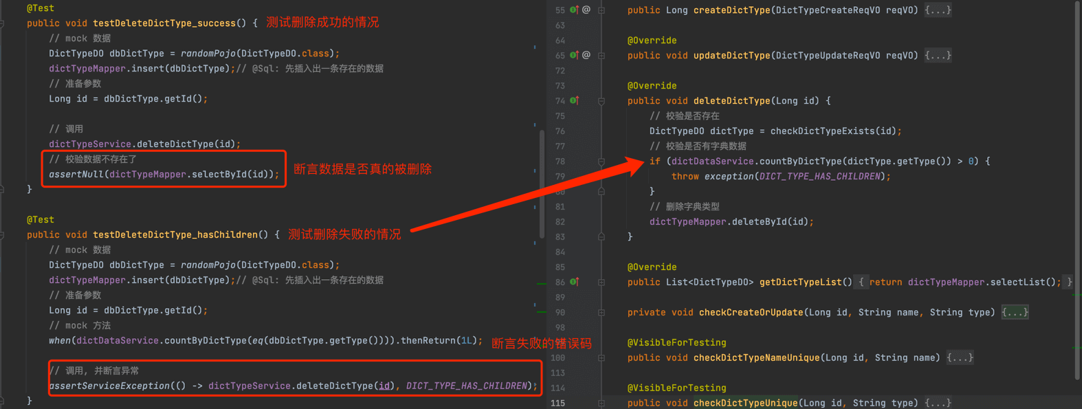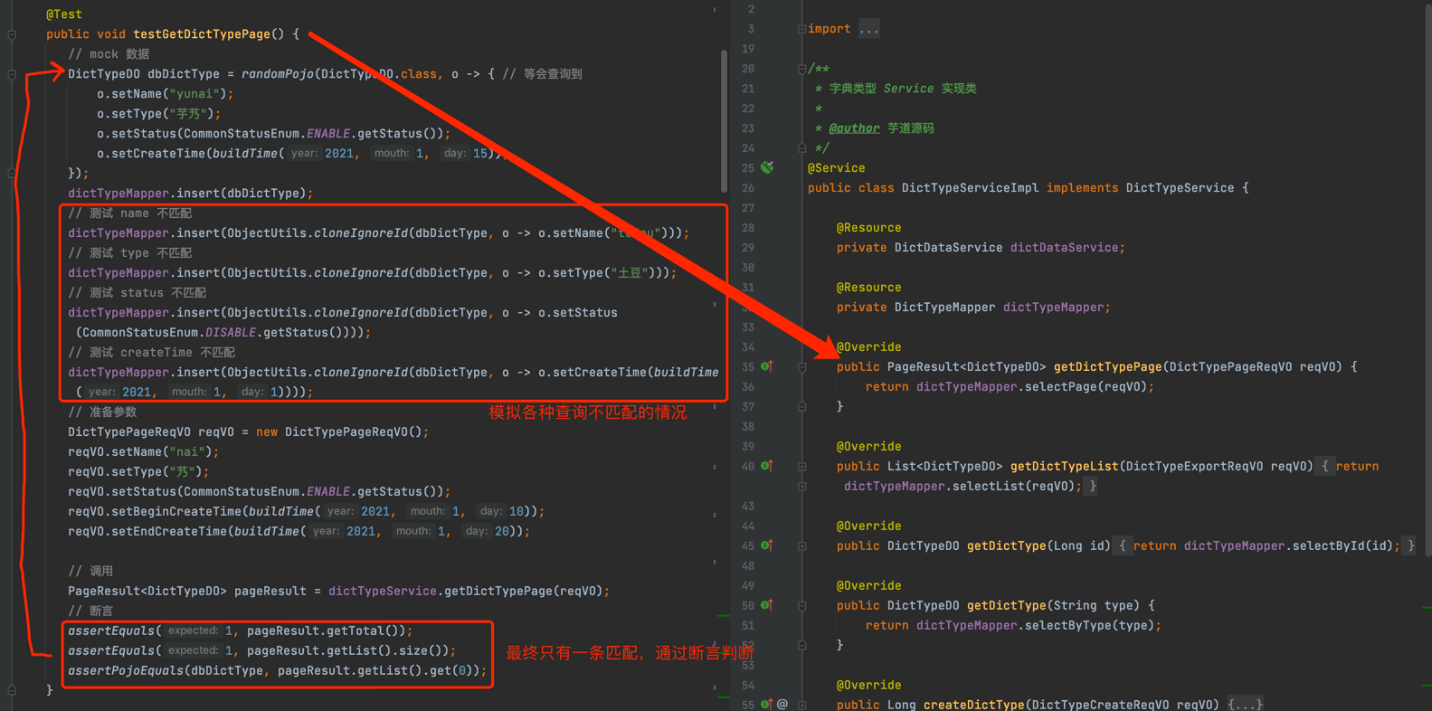 以字典类型模块的 DictTypeServiceImpl 为例子,讲解它的 DictTypeServiceTest 单元测试的编写实现。